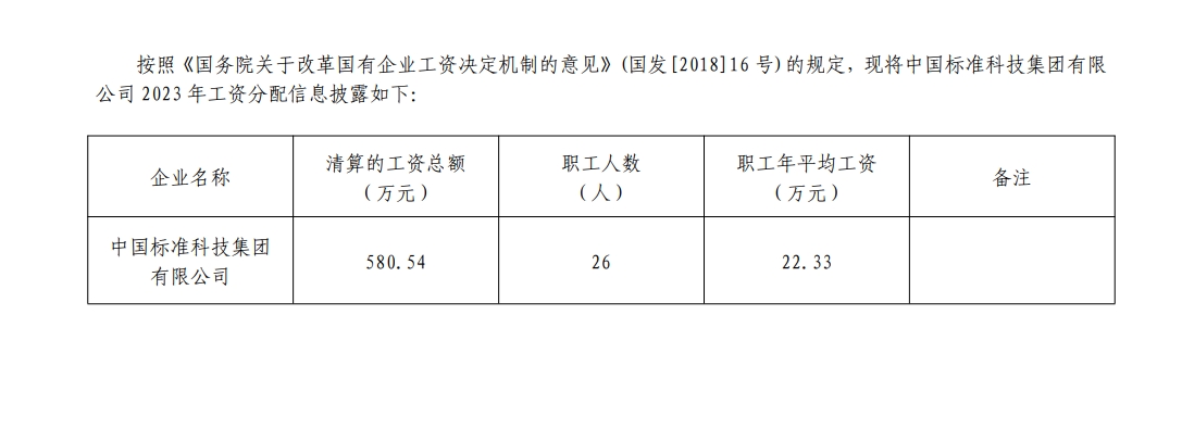 2023年中國標準科技集團有限公司工資分配信息披露