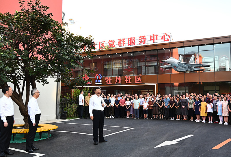 8月16日至17日,中共中央總書記、國家主席、中央軍委主席習近平在遼寧考察。這是17日下午,習近平在沈陽市皇姑區三臺子街道牡丹社區考察時,同社區居民群眾親切交流。新華社記者 燕雁 攝