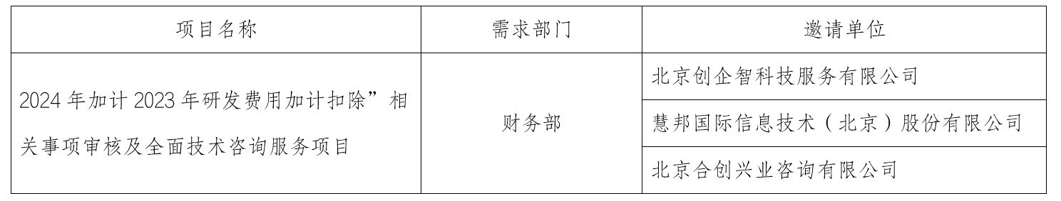 按照《中國標(biāo)準(zhǔn)科技集團(tuán)有限公司采購工作管理辦法(試行)》要求,現(xiàn)對“2024年加計2023年研發(fā)費(fèi)用加計扣除”相關(guān)事項審核及全面技術(shù)咨詢服務(wù)項目競爭性談判邀請單位進(jìn)行公示。