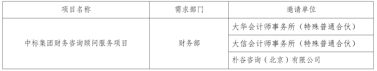 按照《中國標準科技集團有限公司采購工作管理辦法(試行)》要求,現對中標集團財務咨詢顧問服務項目競爭性談判邀請單位進行公示。