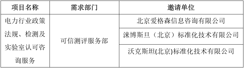 按照《標新科技(北京)有限公司采購工作管理辦法(試行)》要求,現對“電力行業政策法規、檢測及實驗室認可咨詢服務”項目競爭性談判邀請單位進行公示。